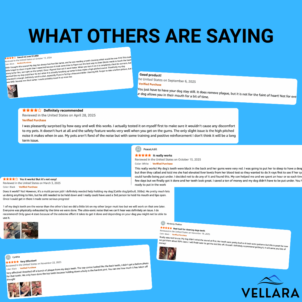 No worries. The Vellara Silent Sonic Cleaner's whisper-quiet motor and gentle vibrations mean your dog experiences zero pain or stress. It’s so quiet and soothing that even the most nervous pups stay calm throughout the session—far more easily than with other tools.